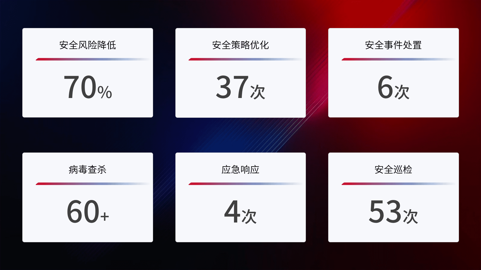 提供全面的安全事件报告体系,,,,包括处置报告、、周报、、季度和年度总结,,结合持续监控,,帮助客户深入了解网络安全状况。。