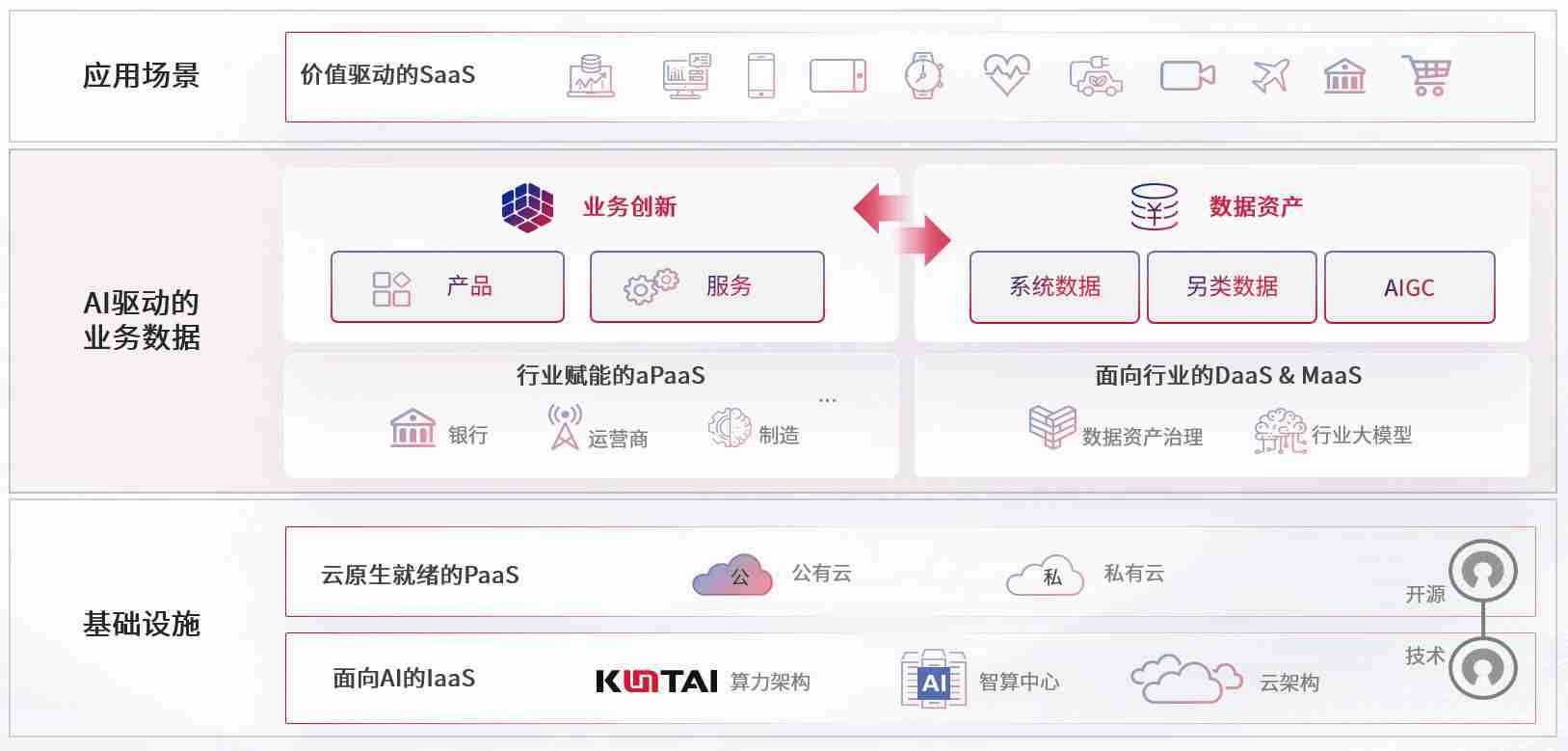 数字时代,,,围绕企业数字化转型的关键要素,,,,有钱钱包数码开创性的提出数云融合战略和技术体系框架,,着力在云原生、、、、数字原生、、、AI原生和信创产业上架构产品和服务能力,,,为处在不同数字化转型阶段的快消零售、、、汽车、、、金融、、、医疗、、、、政企、、教育、、运营商等行业客户提供泛在的敏捷IT能力和融合的数据驱动能力,,,构建跨界融合创新的数字业务场景和新业务模式,,助力企业级客户建立面向未来的核心能力和竞争优势,,,,全面推动社会的数字化、、智能化转型升级。。。。